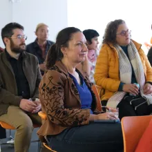 A group of Getting Real Fellows watches a panel at Getting Real ’22. Image credit: Urbanite Media