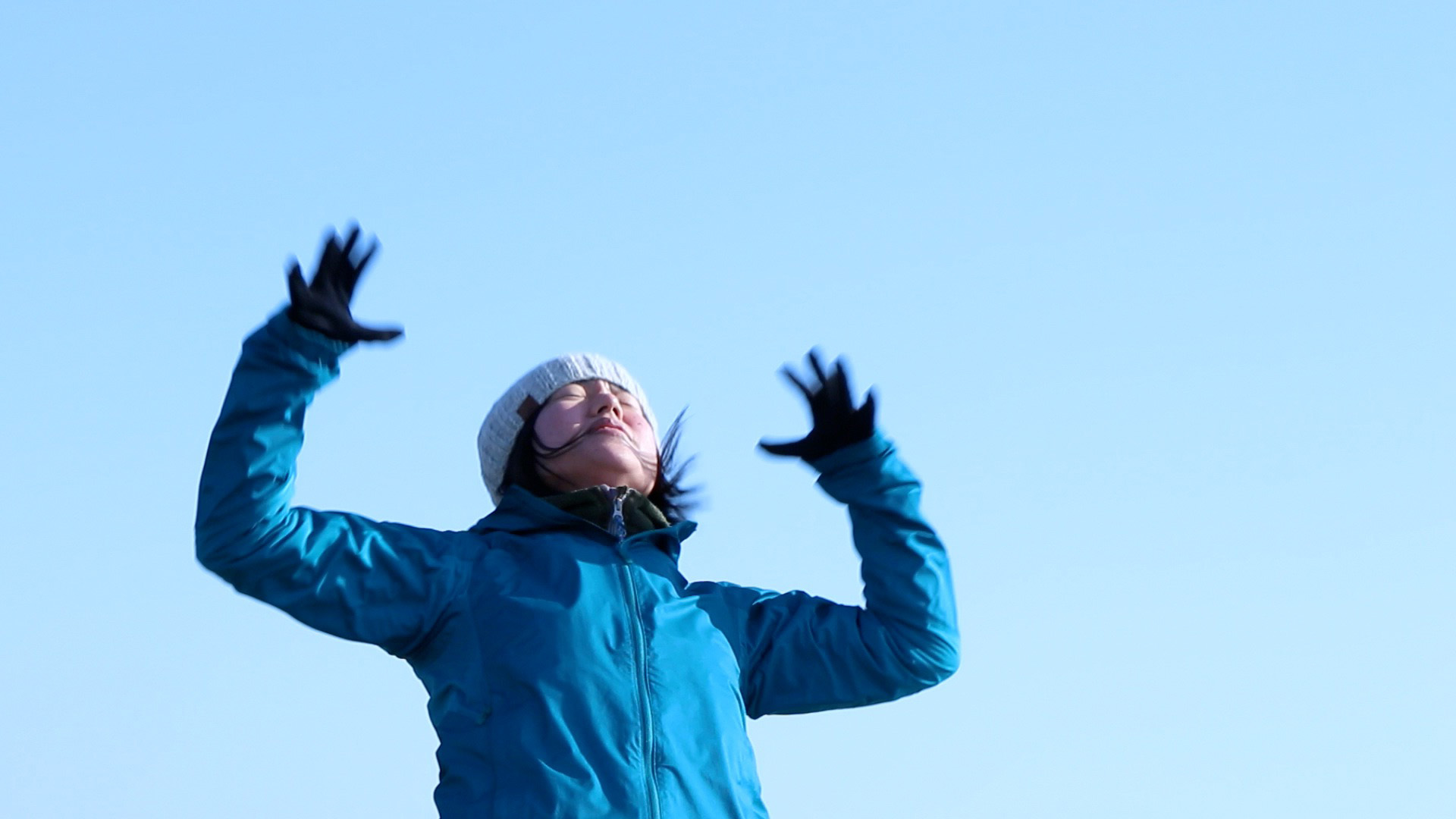 In Listen, Makihara foregrounds the idea that d/Deaf music emerges from the body’s phenomenological attunement to the surrounding landscapes. Across several musical performance sequences, individual performers move expressively through striking landscapes—by the ocean, on sunlit Tokyo rooftops, and in empty studios. Experiments with harmony unfold spatially: in one scene, two performers engage in a kind of visual polyphony, playing with distance and depth of field, synchrony, and desynchrony.