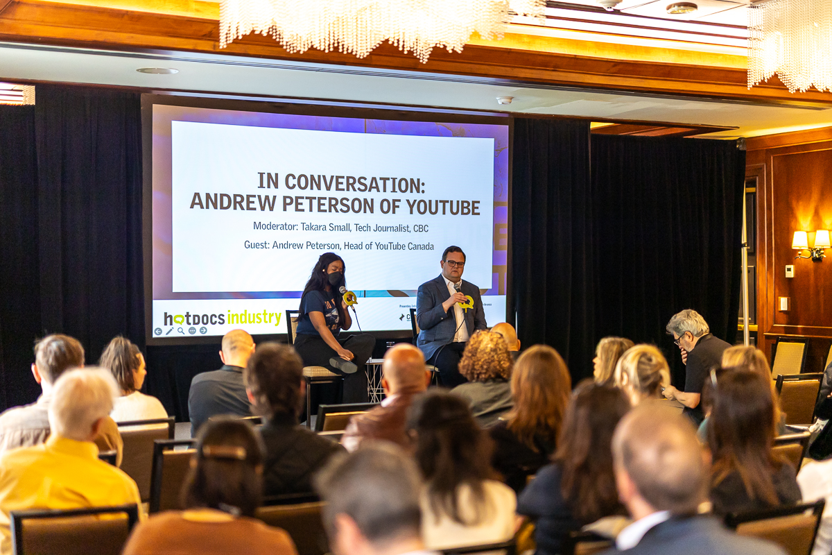 The conference sessions included “Truth of Bias: Making Documentaries in the Age of Polarization,” “Meet the Distributors,” “How to Position and Market Your Films,” and “Ethical Use of A.I. in Documentaries.” A speaker from Youtube Canada harped on digital fingerprints, copyright protections, viral marketing, and “telling great stories”; a marketing panelist described content creators on social platforms as “digital journalists”; an expert likened assistive A.I. to a grunt-working intern, and spoke about perturbing cases of ultra-convincing dupes with an almost perverse glee. The latter conference began with the speakers asking the crowd, “Who works in A.I.?” (many hands shot up) and “Who wants nothing to do with it?” (only one person, braver than I, raised their hand after a long delay). It carried on in a neutral tone, outlining the ways that the technology could be used to assist in research and enhance (but not transform) archival materials featured on screen. I couldn’t help but wonder where I might have missed its use in the films I’d been watching.