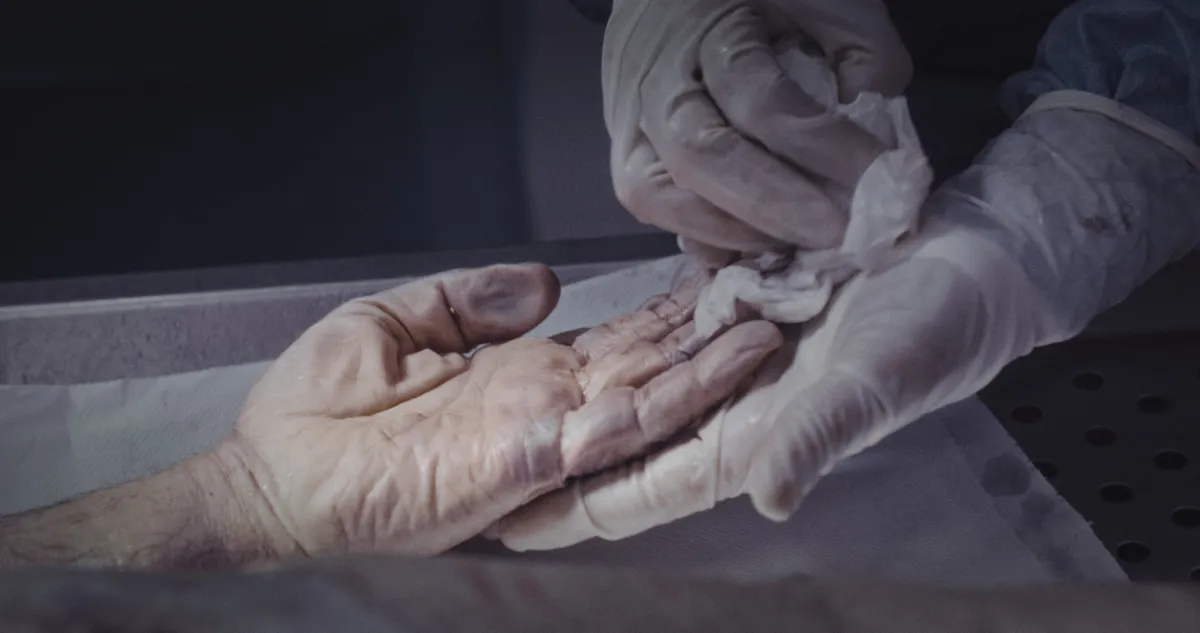 MATTIA COLOMBO: I was fascinated by the forensic work, the fact that they collect a lot of fragments, and from these, they try to reconstruct an identity. I recognized a parallel with our work as documentary filmmakers: we also collect parts of a story and try to build a narrative.