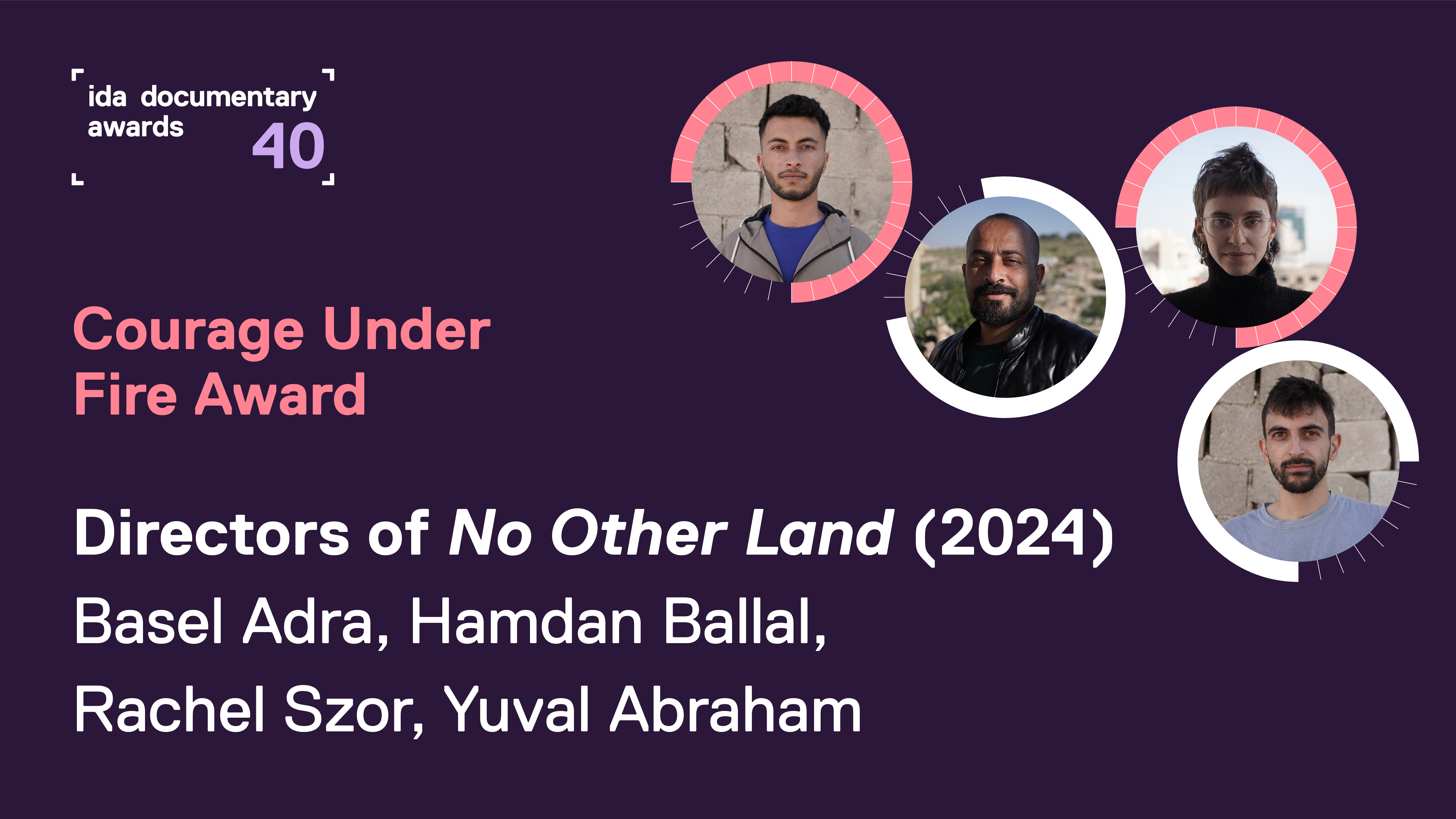 Courage Under Fire AwardBasel Adra, Hamdan Ballal, Rachel Szor, Yuval Abraham Director of No Other Land (2024)Established in 2001 and given occasionally by the IDA Board of Directors, IDA’s Courage Under Fire Award is presented to documentarians displaying conspicuous bravery in the pursuit of truth, as recognition from their peers for putting the freedom of speech—represented in its aspects of the crafts of documentary filmmaking and journalism—above all else, even their own personal safety. Basel Adra, a young Palestinian activist from Masafer Yatta, has been fighting his community's mass expulsion by the Israeli occupation since childhood. In No Other Land, Basel documents the gradual erasure of Masafer Yatta, as soldiers destroy the homes of families - the largest single act of forced transfer ever carried out in the occupied West Bank. He crosses paths with Yuval, an Israeli journalist who joins his struggle, and for over half a decade they fight against the expulsion while growing closer. Their complex bond is haunted by the extreme inequality between them: Basel, living under a brutal military occupation, and Yuval, unrestricted and free. This film, by a Palestinian-Israeli collective of four young activists, was co-created during the darkest, most terrifying times in the region, as an act of creative resistance to apartheid and a search for a path towards equality and justice. Basel Adra is a Palestinian lawyer, journalist, and filmmaker from Masafer Yatta. He has been an activist and documentarian since 15, fighting against Israel's mass expulsion of his community. Rachel Szor is an Israeli cinematographer, editor, and director from Jerusalem.