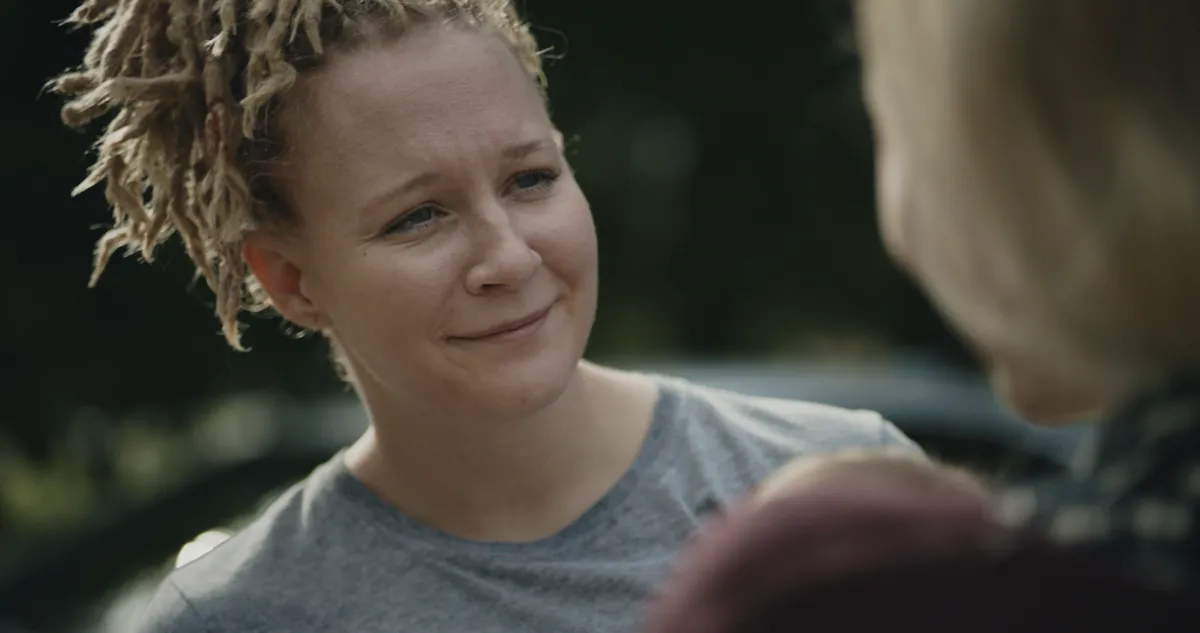 Film still from Reality Winner, of Reality Winner reuniting with her family after being released from prison. Image credit: E.J. Enríquez
