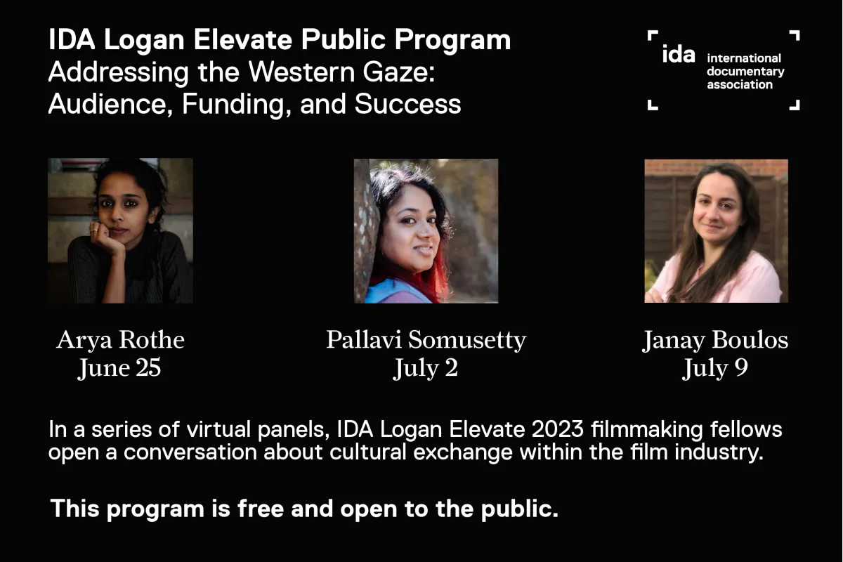 In a series of panels, IDA Logan Elevate 2023 filmmaking fellows Janay Boulos, Arya Rothe, and Pallavi Somusetty, open a conversation about cultural exchange within the film industry: