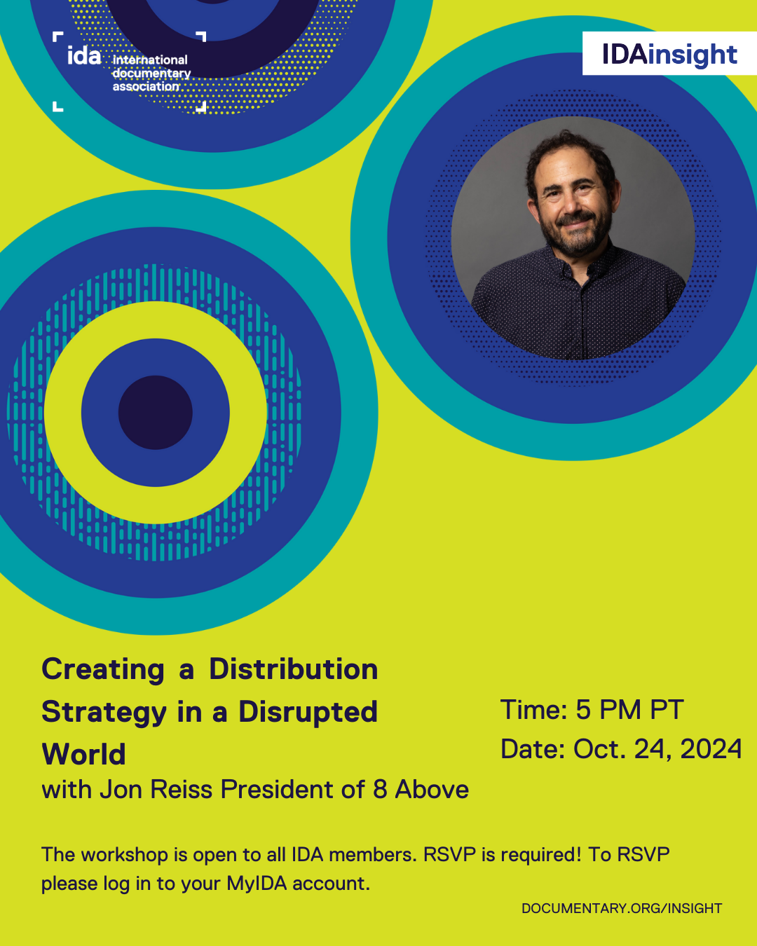 The “traditional” distribution landscape is in a state of disruption - often leaving independent filmmakers on their own to find new and creative solutions to ensure their films reach audiences in an impactful way. In this IDA Insight workshop, Jon Reiss will outline fundamental principles and real-world strategies for success in the ever-changing and often-daunting realm of distribution and marketing. In this IDA Insight Workshop, Jon will cover setting goals, strategies for reaching audiences, what blend of festivals, community screenings, and theatrical will work best for your film, broadcast/streaming/VOD, educational distribution, and how to window rights to effectively achieve your goals. Join us for an insightful and honest discussion on strategic planning to meet the complex landscape of creative distribution.