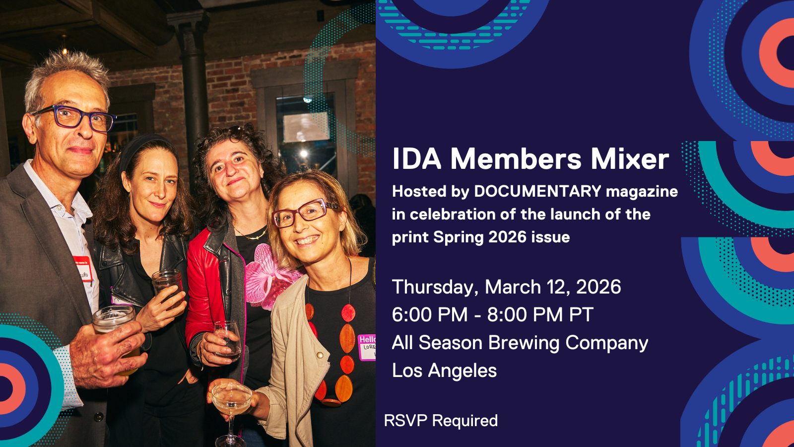 IDA Members Mixer  -  Hosted by DOCUMENTARY magazine in celebration of the launch of the print Spring 2026 issue