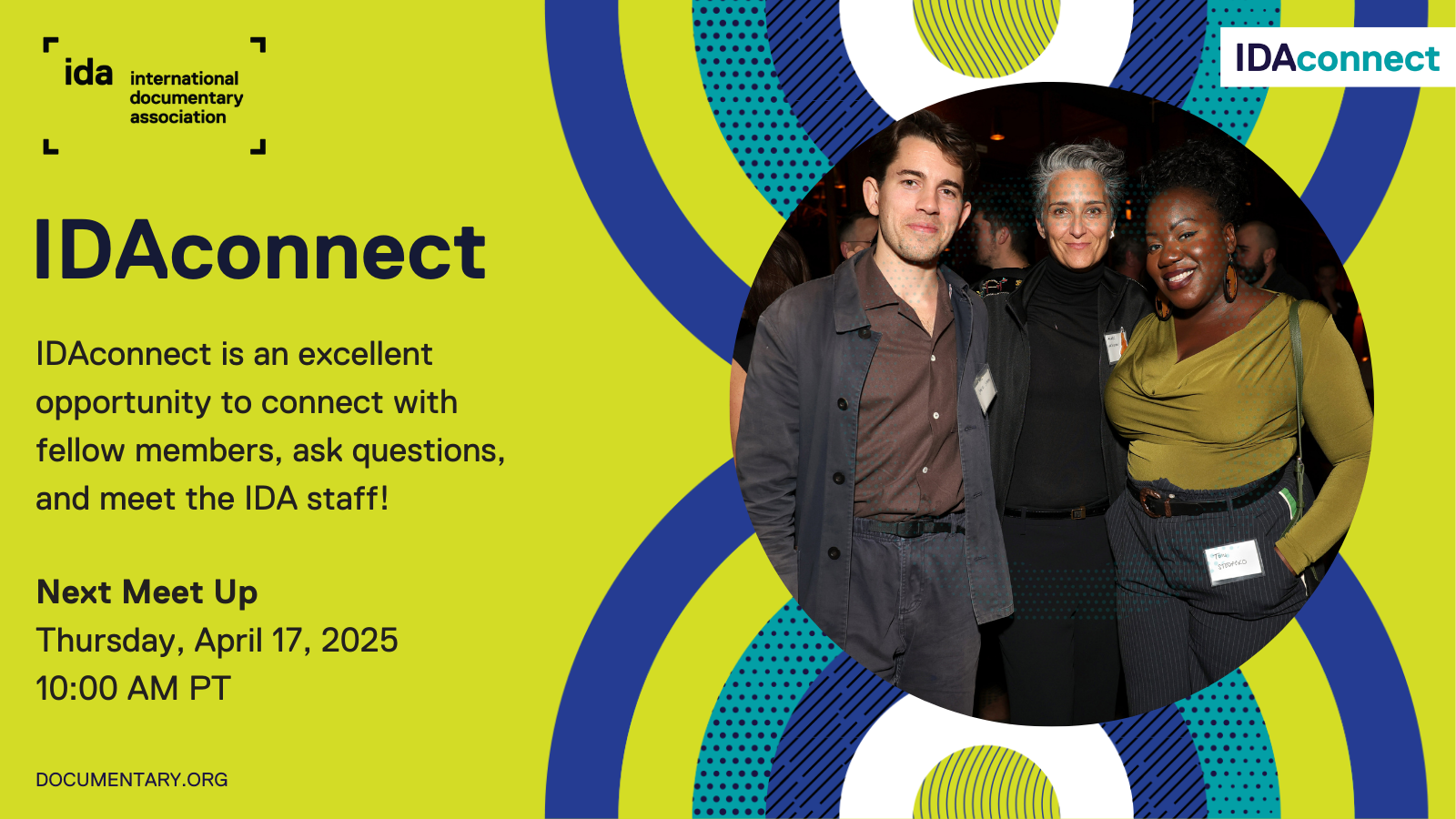 Join us every third Thursday of the month for IDAconnect, a virtual gathering designed to keep you informed about the latest at IDA and an excellent opportunity to network with fellow filmmakers and film enthusiasts. Open to current IDA Members at the Doc Lover level and above, IDAconnect allows you to engage with our Membership staff, connect with other IDA members from around the world, and strengthen your ties within our community.