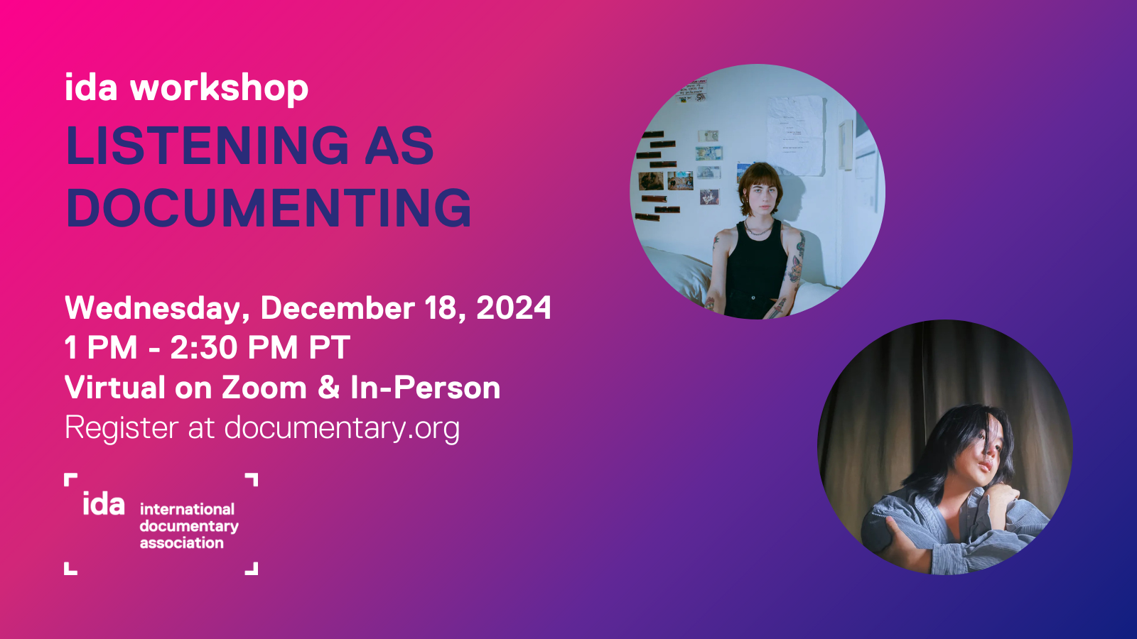 When documentary filmmakers seek experimental forms of nonfiction storytelling, we often look to experimental films and moving image work. But there are other forms of documentary practice, such as in music. In this hybrid workshop, artists Claire Rousay and Lucy Liyou will talk through and demonstrate their processes of using field recordings, textural found sounds, and ambient music in world-building. Moderated by Lucy, this hybrid workshop and sound performance encourages us to broaden our expectations of documentary beyond the visual.