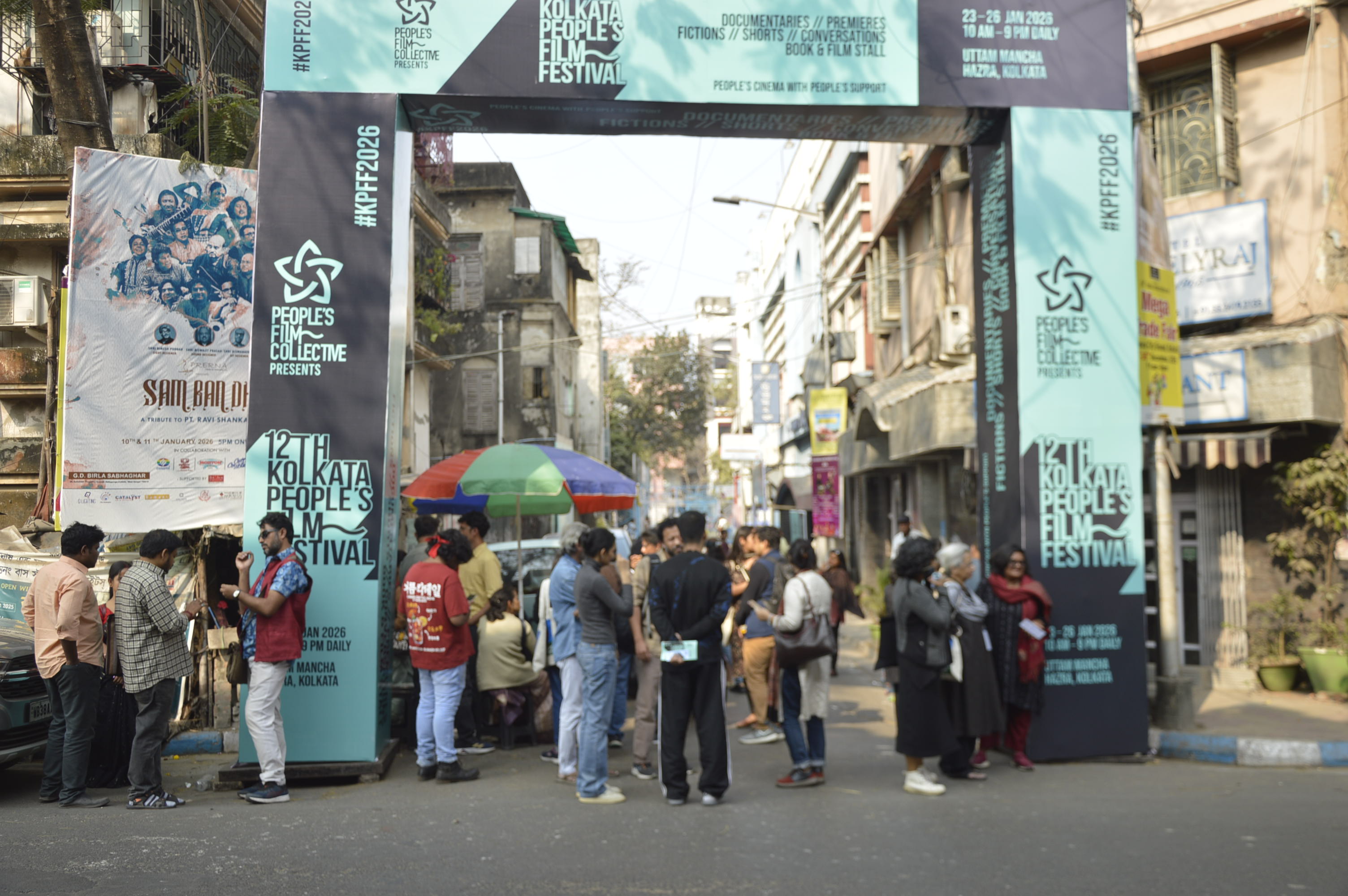 Like its previous iterations, the 12th Kolkata People’s Film Festival (January 23–26, 2026) was organized on a shoestring budget, raised entirely through voluntary subscription. “It is not easy [for filmmakers] to trust a festival which is not tagged with big names or big title sponsors, which is not giving out an award,” Kasturi Basu—a co-founder of the People’s Film Collective (PFC), which organizes the festival—said in her closing speech. “The only award is a very energetic audience and a good screening. And this gives us the assurance that we are all a community together.”
