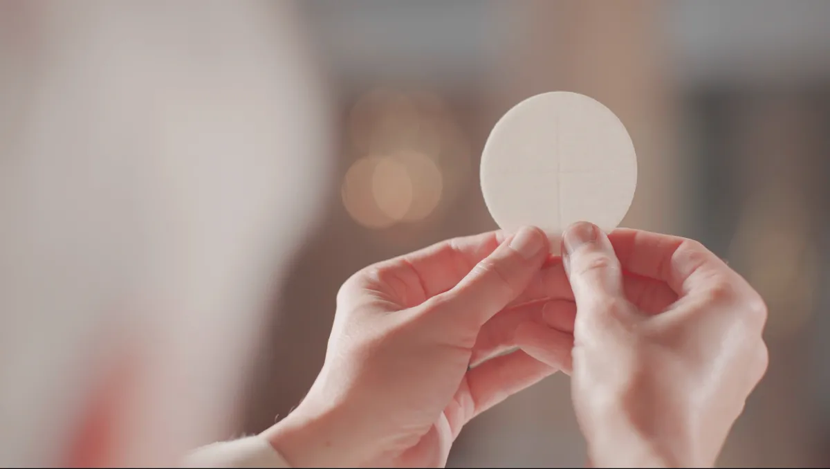 Still from Jesus Thirsts, featuring the Eucharistic bread. Courtesy of the filmmakers.