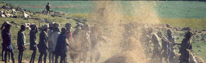 Gerima returned to Ethiopia in 1974 to make his narrative film Harvest 3,000 Years, and again in 1994 and 1999, respectively, for Imperfect Journey and Adwa: An African Victory. For Imperfect Journey, Gerima wandered around Gonder to gauge what the locals thought of life under the EDRPF [Ethiopian People's Revolutionary Democratic Front], the new government that overthrew the infamous and longstanding military junta known as the Derg Regime. The BBC commissioned the film, and Gerima traveled with Ryszard Kapunski, a Polish journalist. But despite the major network involvement, all collaborators, according to the filmmaker in voiceover, “agreed to make a film whereby Africans speak for themselves.” Gerima also maintains his distinctive style: zooms, nonlinear editing, and sparsely-used thirds.