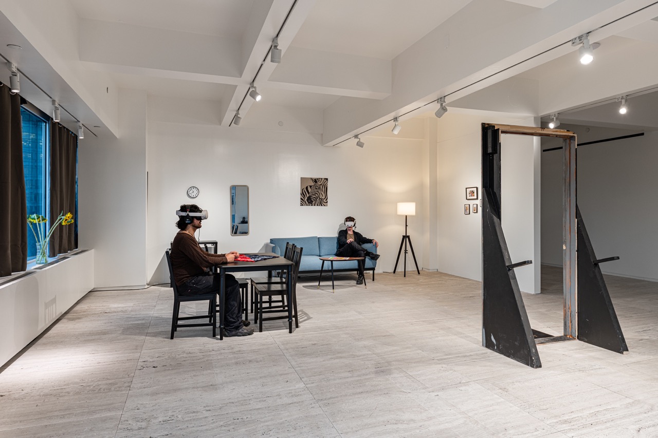 Eleven art installations take over two floors of WSA, a glass office tower in lower Manhattan—with backdrops of floor-to-ceiling views of the city at every turn. While VR headsets are still featured in small doses, they are balanced with works in other formats, including large projections, live performances, haptics, augmented and mixed reality, along with interactive AI explorations. In fact, four of the eleven works in this exhibit, two of which are described below, were incubated in the MIT Open Documentary Lab, where the author of this piece works.
