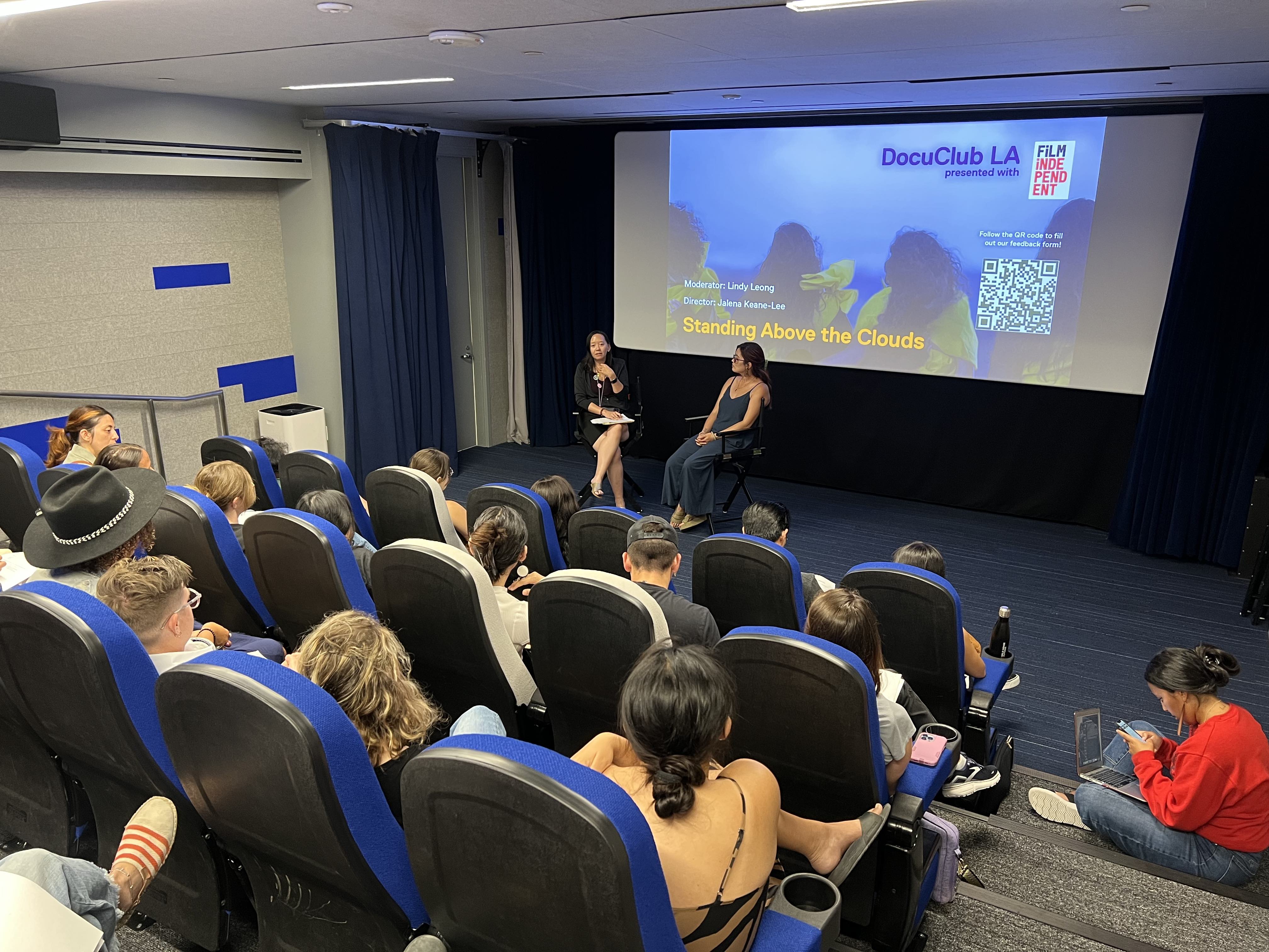 Lindy Leong (L) and Jalena Keane-Lee (R) at a July 2023 DocuClub LA screening, presented with Film Independent. The 2023 season of DocuClub was supported by an NEA Grants for Arts Projects grant. Image credit: Gabriella Ortega Ricketts